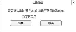 Ø 直接出售:直接选择物品操作菜单,选择出售会出现出售确认弹框
